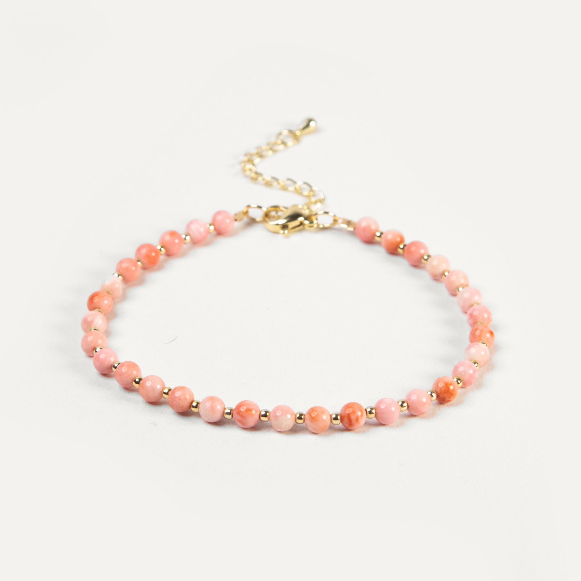 Элегантный браслет из натуральных камней с регулируемой длиной на застежке. Идеальное сочетание природной красоты и стиля! Этот изящный браслет выполнен из натуральных камней (диаметр 4 мм), каждый из которых аккуратно нанизан через миниатюрные металлические проставки. Такая конструкция защищает камни от трения и придают композиции воздушность. Разнообразие камней поможет подчеркнуть любой образ и будет отличным дополнение к базовому гардеробу. Удобная регулировка длины за счет замка-карабина и цепочки-удлинителя (+5 см) обеспечит идеальную посадку на любое запястье. Натуральные камни не только радуют глаз, но и дарят ощущение связи с природой. Легкий, изысканный и практичный — он станет вашим любимым аксессуаром, который можно комбинировать с другими украшениями или носить как самостоятельный акцент. Выберите свой камень, и пусть каждый шаг будет наполнен гармонией!