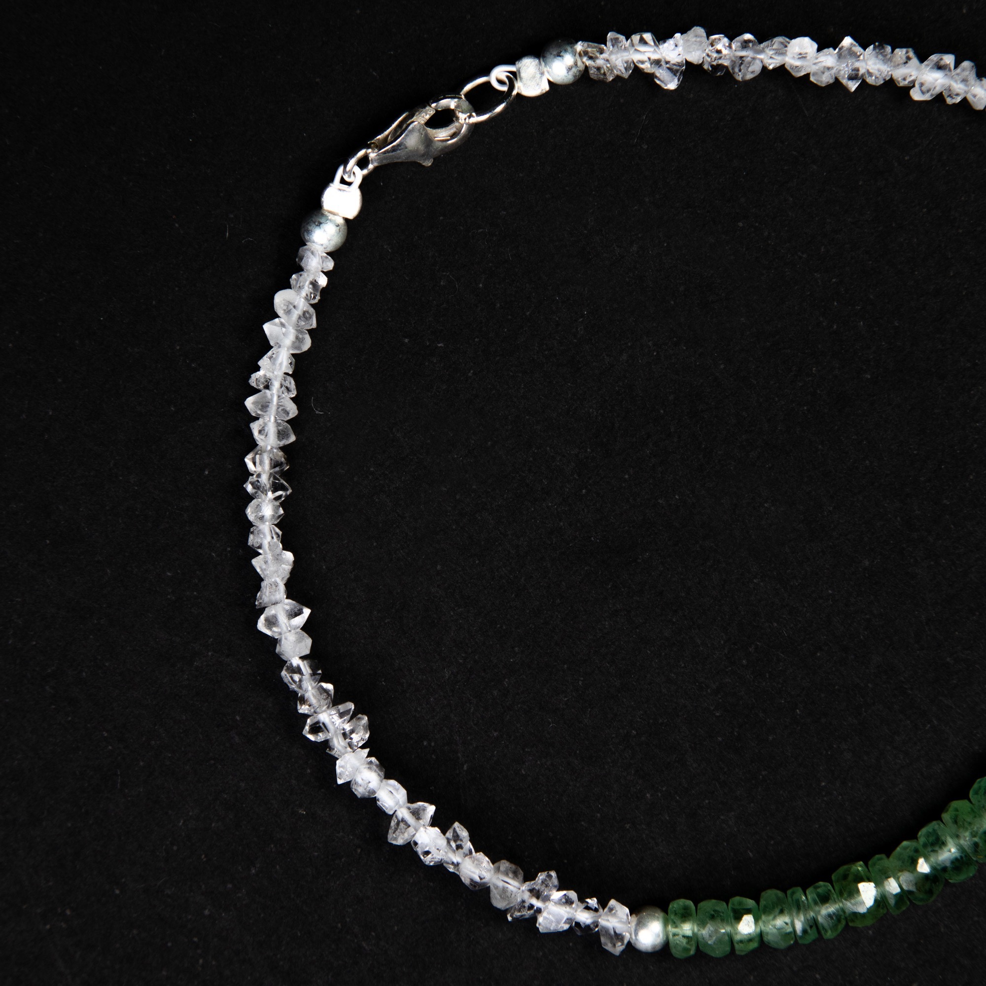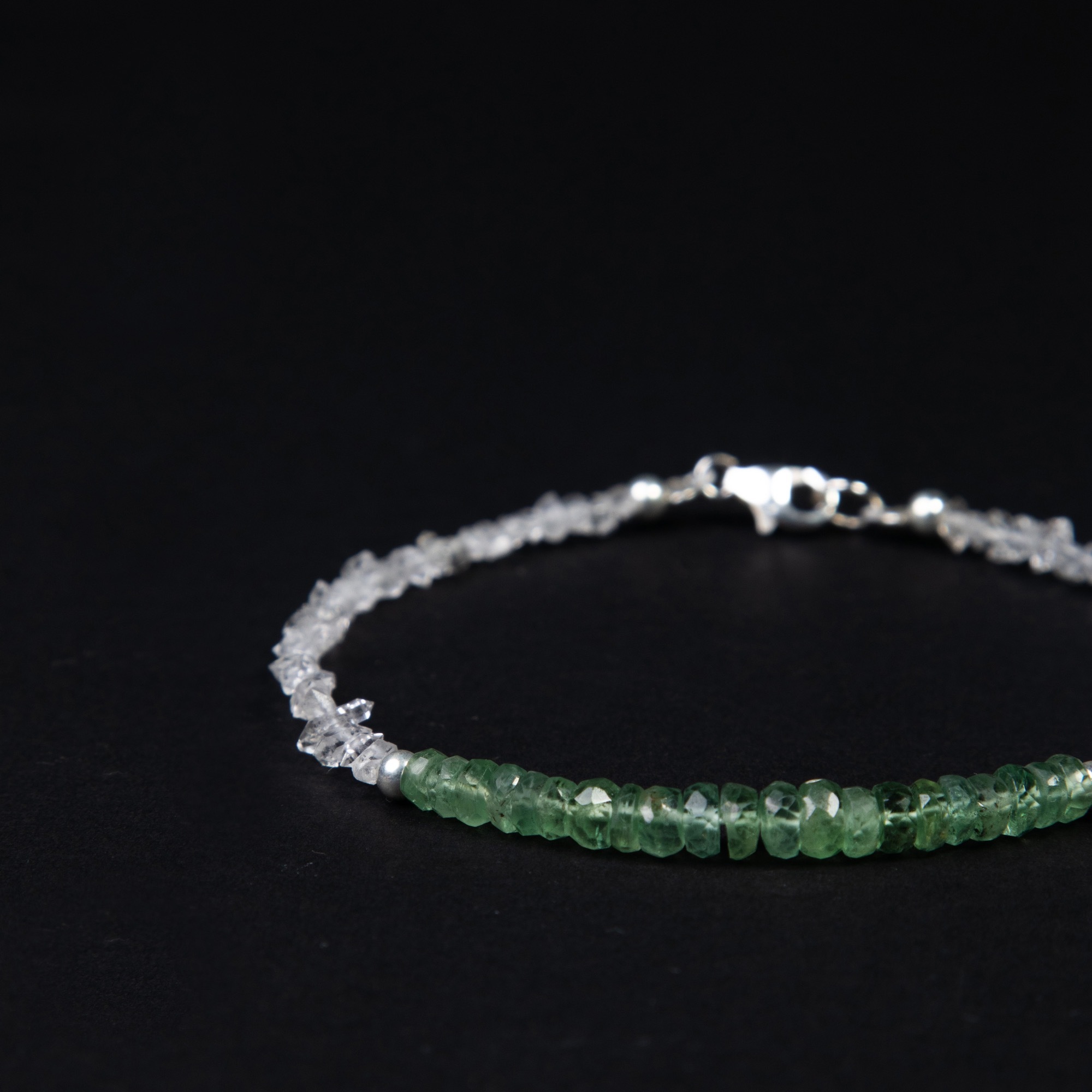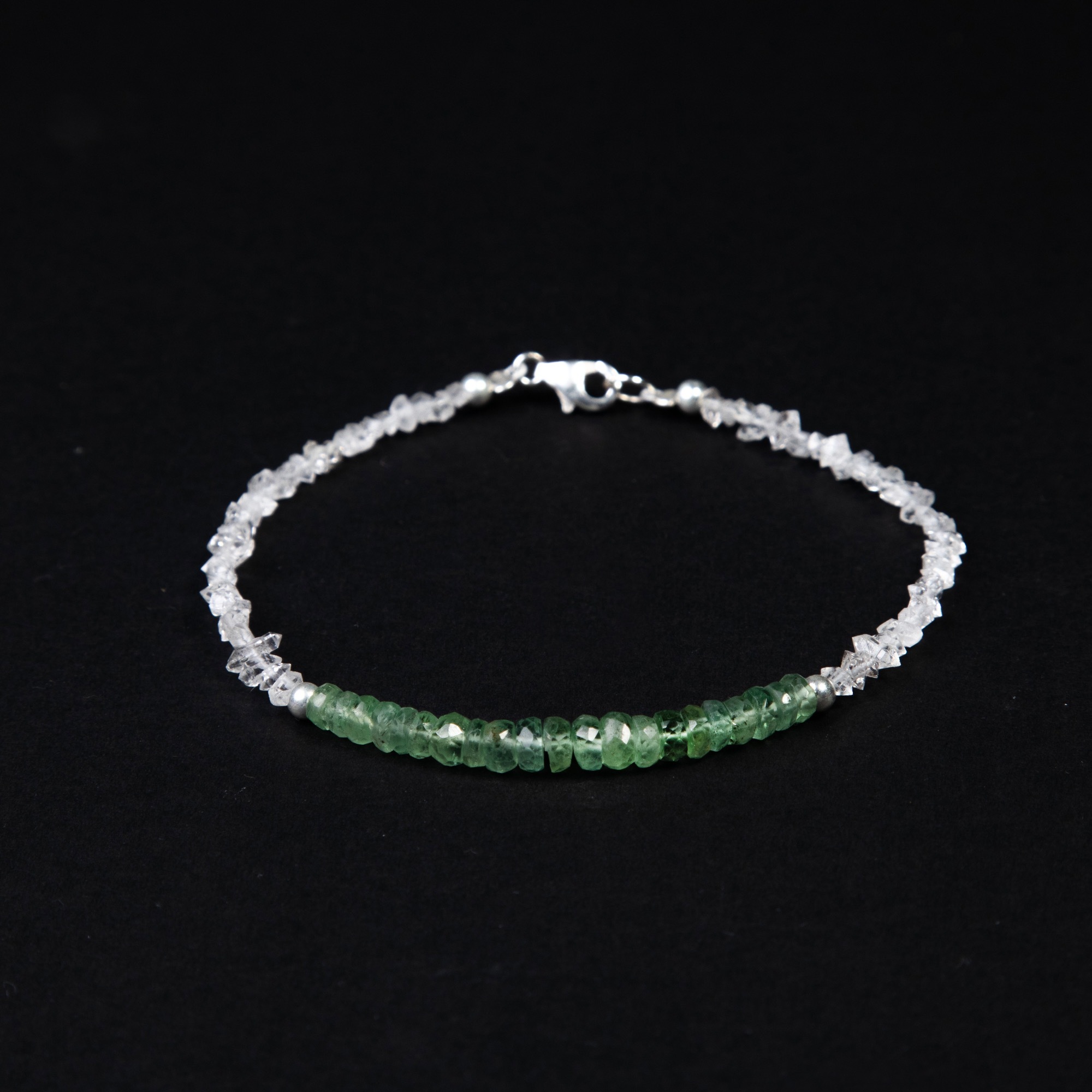 Браслет женский на руку из натуральных камней Vibrant с танзанитом, бериллом и херкимерским алмазом является утонченным аксессуаром для придания изысканности любому образу. Используемые в браслете премиальные камни подчеркивают его уникальность и качество. Синие оттенки танзанита и зеленый тона берилла гармонично сочетаются с прозрачностью херкимерского алмаза, что создает визуально привлекательный контраст. Замок-карабин обеспечивает надежное закрепление браслета на запястье и удобство в использовании. Форма и размер камней могут незначительно варьироваться, что делает каждый экземпляр неповторимым и подчеркивает натуральное происхождение материалов. Этот аксессуар может стать прекрасным дополнением к повседневному или вечернему наряду, а также стать значимым подарком для любимого человека.
