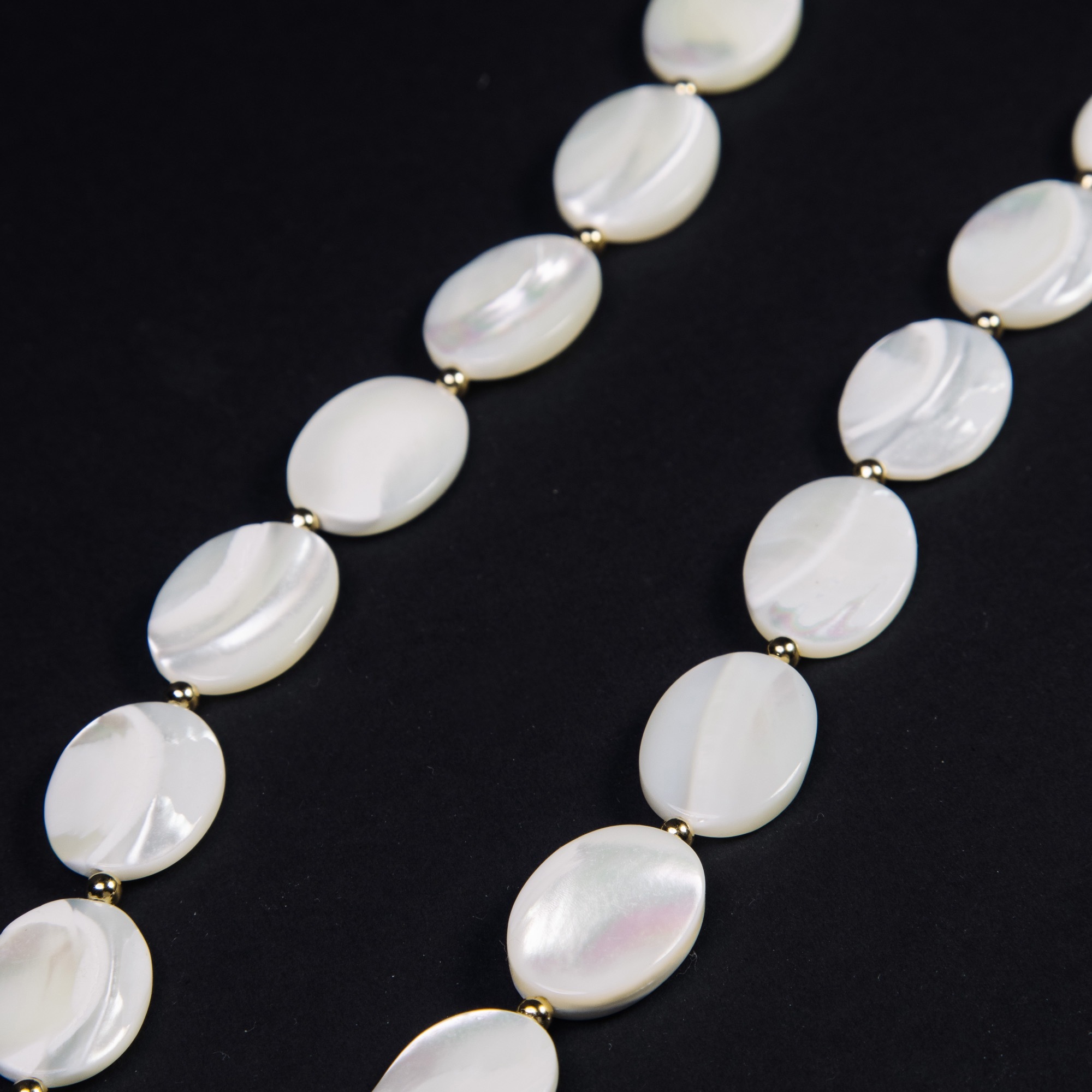 Уникальное колье от бренда BL Jewelry — это прекрасное сочетание стиля и природной красоты. Изготовленное из перламутра, ожерелье Couler отражает свет, создавая нежное мерцание на поверхности каждого камня. Каждый элемент овальной формы имеет свою уникальную текстуру, подчеркивающую природную идентичность изделия. Камни нанизаны на прочный ювелирный тросик, обеспечивая надежность и изысканную гибкость аксессуару. Украшение дополнено золотистистистыми прослойками, которые гармонично сочетаются с теплыми оттенками перламутра. Это колье идеально подойдет для дополнения как повседневного, так и вечернего наряда, добавляя при этом изюминку в образ.