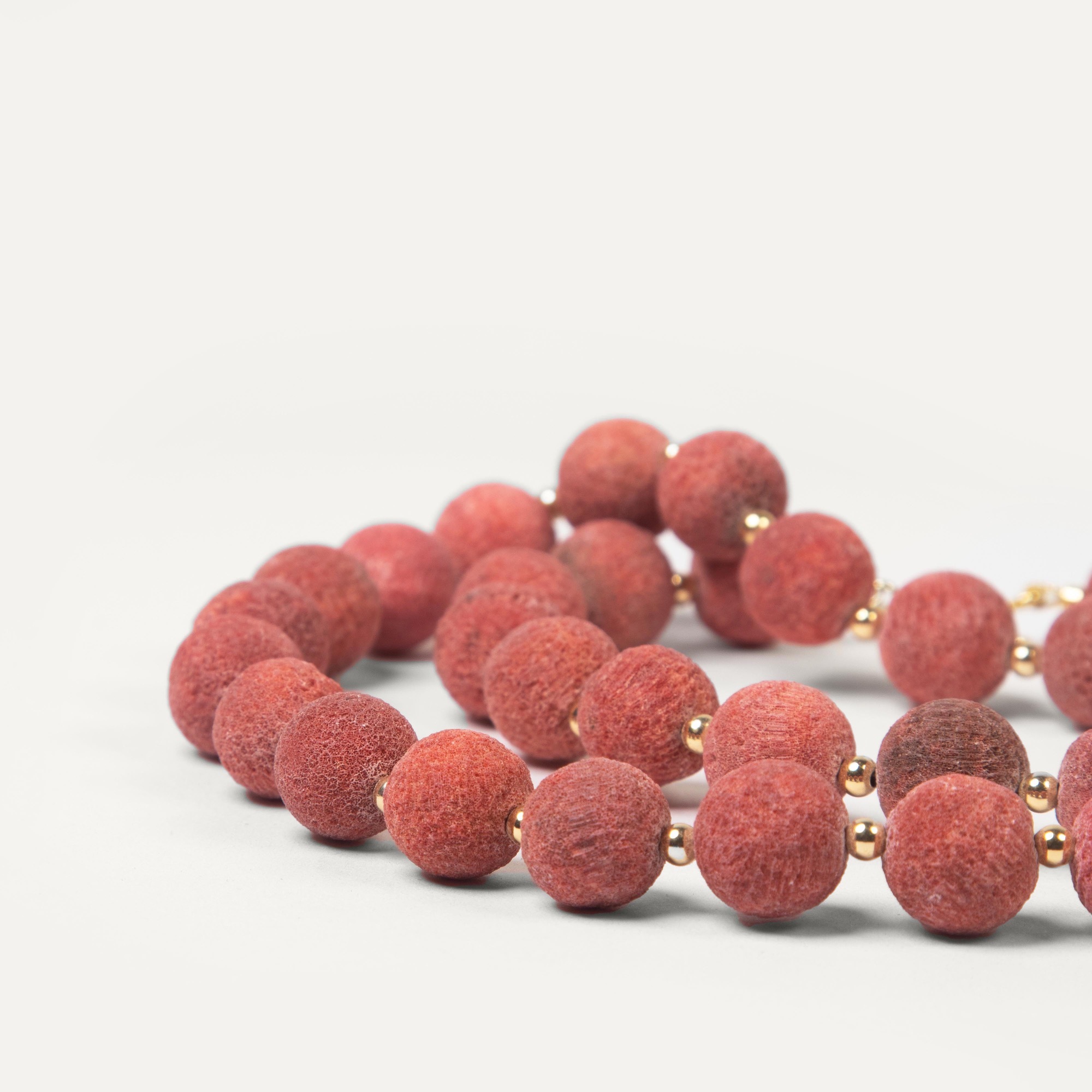 Колье Shard с губчатым кораллом — это изысканное украшение, выполненное из натурального губчатого коралла. Каждый элемент колье представляет собой бусины округлой формы, которые имеют естественную текстуру и теплый коралловый оттенок, придающий изделию особенную природную красоту.