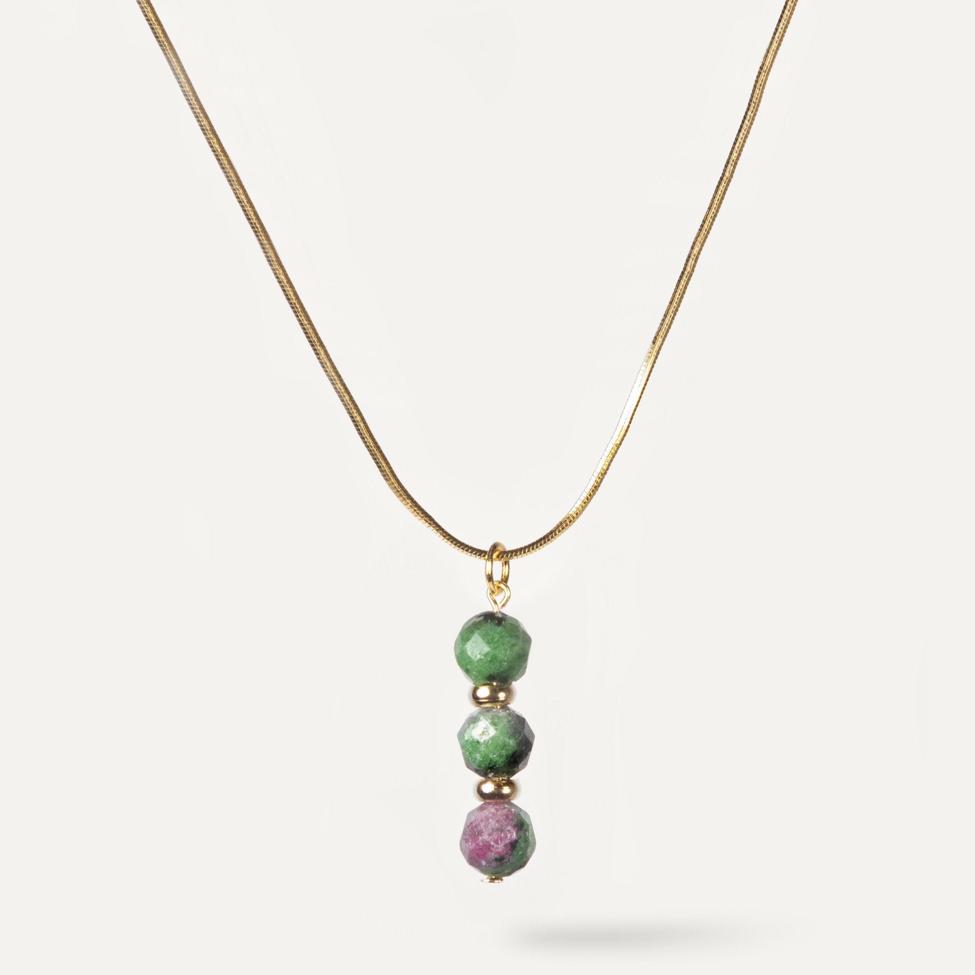 Подвеска Lounge — изящное украшение из натуральных камней, созданное для тех, кто ценит лаконичную форму и природную красоту. Модель выполнена из трёх камней круглой формы диаметром 6 мм с сияющей огранкой, которые придают подвеске мягкий блеск и визуальную лёгкость. Камни разделены аккуратными бусинами из бижутерного сплава, что добавляет композиции ритмичность и элегантность. Подвеска комплектуется цепочкой, готовой к носке. Lounge — универсальный акцент, который легко впишется в повседневный или более собранный образ.