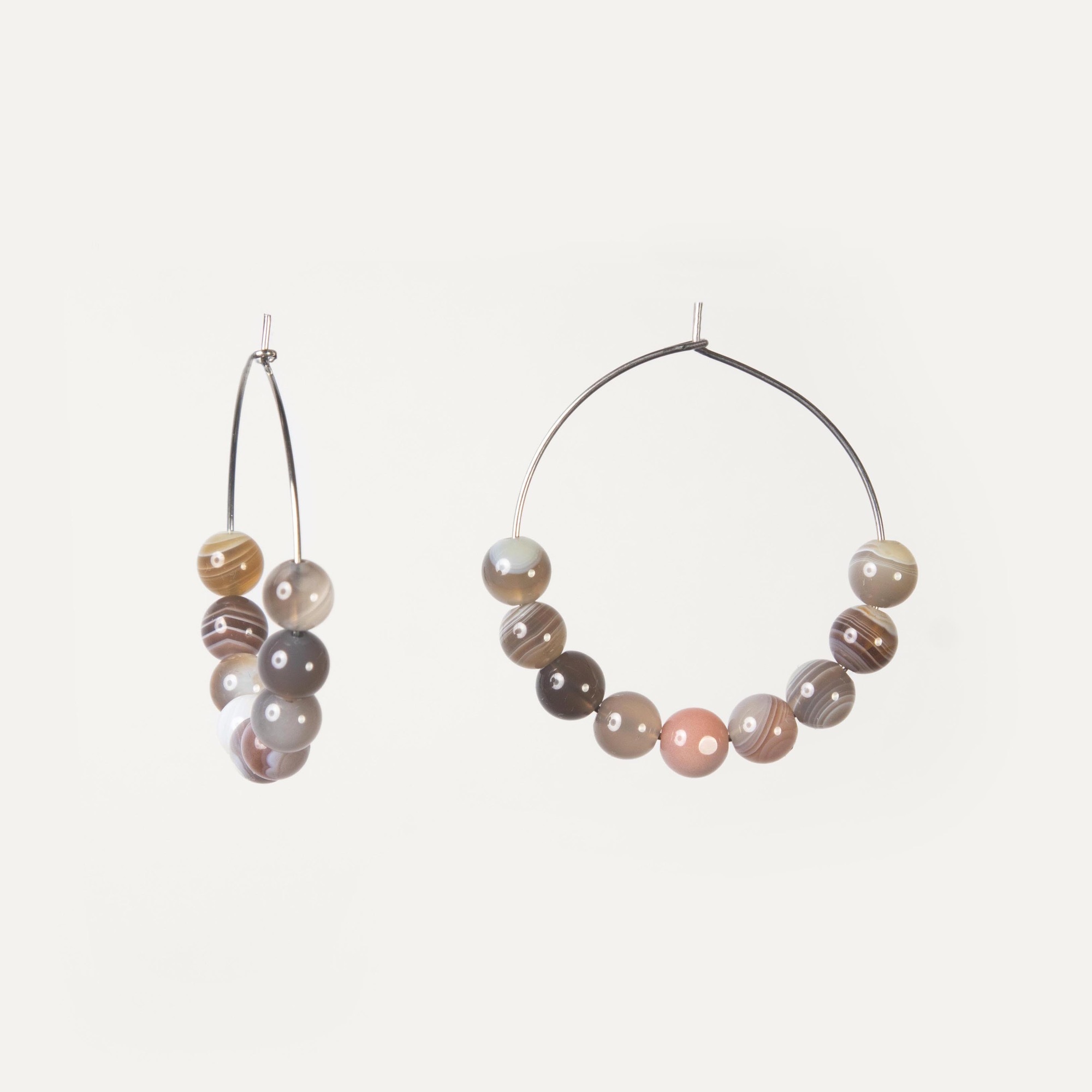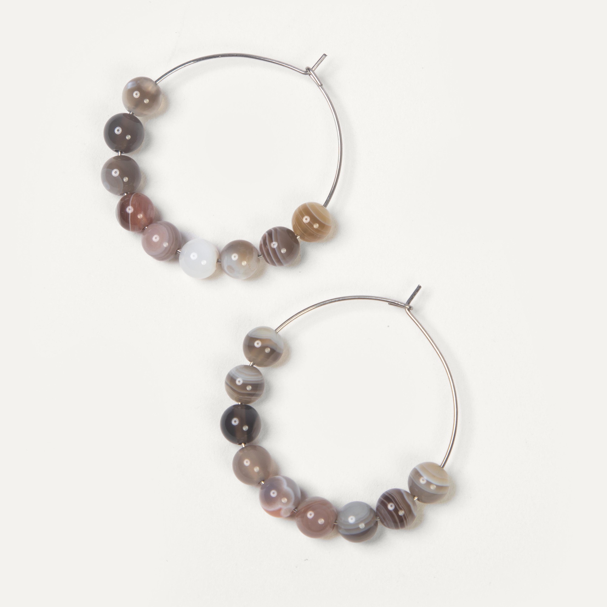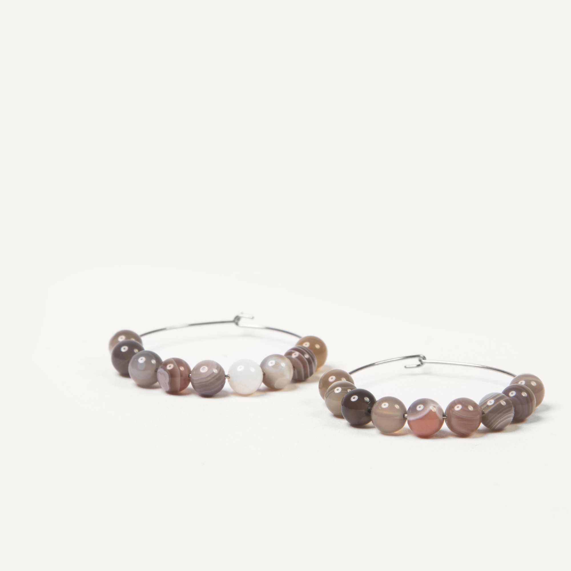 Серьги Vivid — лаконичные кольца с ярким акцентом из натуральных камней. Модель выполнена в виде классического кольца, на которое нанизаны бусины круглой формы диаметром 6 мм. Камни подбираются вручную, чтобы подчеркнуть природную текстуру и глубину цвета. Крепление на замке типа Kong обеспечивает надёжность и удобство в носке. Серьги Vivid — универсальный вариант на каждый день, в котором сочетаются минимализм формы и выразительность натуральных материалов.